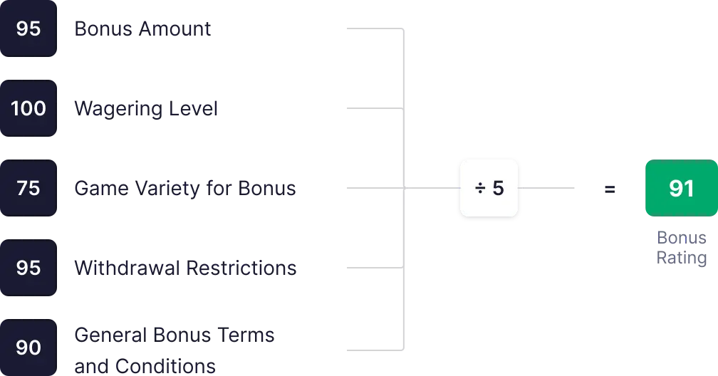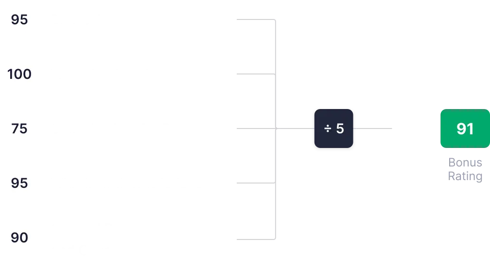 | Ako nudi bonuse (dobrodošlice i ekskluzivne bez depozita) s niskim ili prosječnim uvjetima. | 100 |