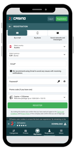 22casino djeluje u 226 regiji s 1 licencom